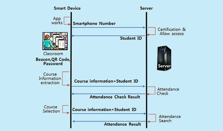 Utilizar la tecnología de balizas para la asistencia automática., necesita instalar una baliza en el aula y crear una base de datos para el curso, el conferenciante, y los estudiantes. La baliza enviará señales continuamente, y tan pronto como un estudiante ingrese al aula, se comunicará con el Bluetooth del dispositivo móvil del estudiante. Una vez que se autentica la ubicación, marcará automáticamente al alumno presente en la clase. Este sistema no requiere ninguna acción por parte de los estudiantes o del profesor., y registró la asistencia en tiempo real. Por lo tanto, es fácil y cómodo de usar.. sin embargo, debe instalarse en cada aula o aula de enseñanza. por suerte, las balizas no son caras. Por eso, instalarlo en todas las aulas no será demasiado caro para la mayoría de las instituciones..