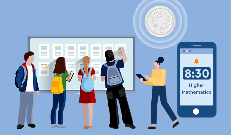 Estudiantes’ las conferencias diarias están guiadas por horarios. Un horario completo incluirá la asignatura, hora, duración, sede, y el nombre del educador. Esto puede ser difícil para los estudiantes saber de antemano.. La escuela puede usar la tecnología Beacon para enviar notificaciones a los estudiantes sobre su próxima conferencia., su lugar, y otra información que hubieran necesitado un calendario para.